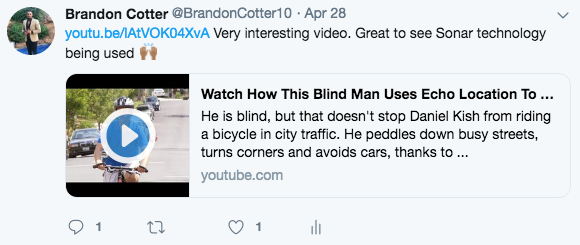 Also another alternative is using this new cane device that branches into the areas of echolocation. Maybe using the cane should be made mandatory with sonar reality, allowing the individual to feel more confront knowing they have support in their own bearings.